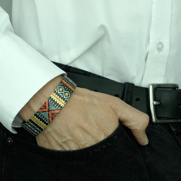Stainless steel designer bracelet 18mm handmade in London - Yellowstone Indian Ambience Metallic