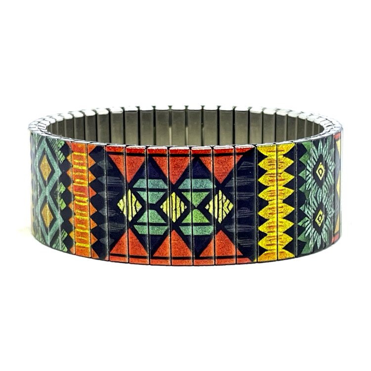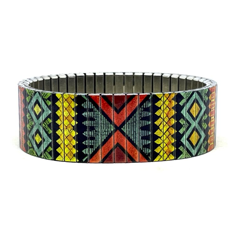 Stainless steel designer bracelet 22mm handmade in London - Yellowstone Indian Ambience Metallic