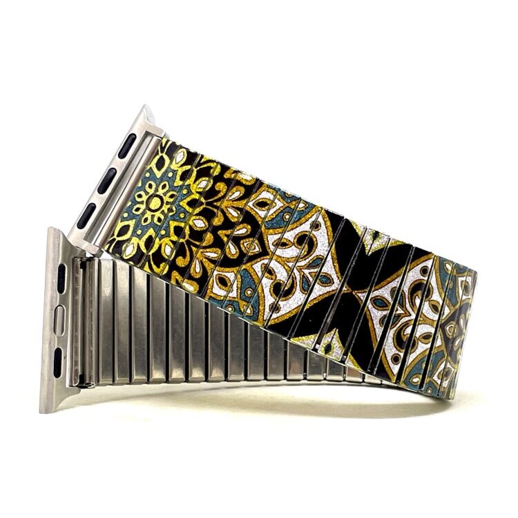 Categories: Apple Watch, Apple Watch bracelet, Apple Watch strap, Apple Watch band, Smart Watch, Smart Watch bracelet, Pro, iOS, iWatch, Iconic, Wearable art, Gift ideas, British designer, Art, Jewellery artist, Unique, Original, Comfortable, Expandable, Durable, Handmade bracelets