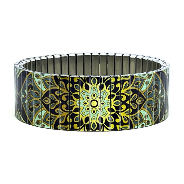 Stainless steel designer bracelet 22mm handmade in London - chic intense green Ambience Metallic