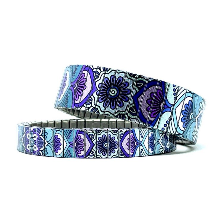 Stainless steel designer bracelet 10mm handmade in London - turuoise mandala Ambience Metallic