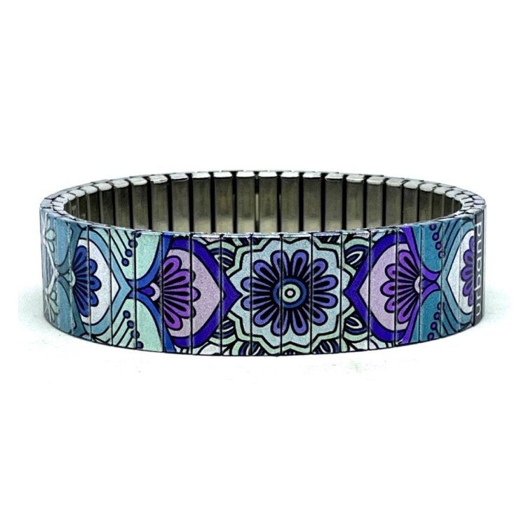 Stainless steel designer bracelet 18mm handmade in London - turquoise mandala Ambience Metallic