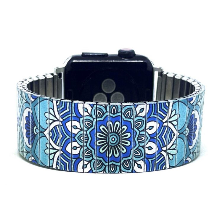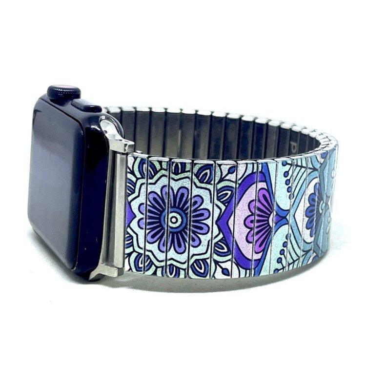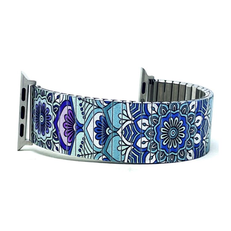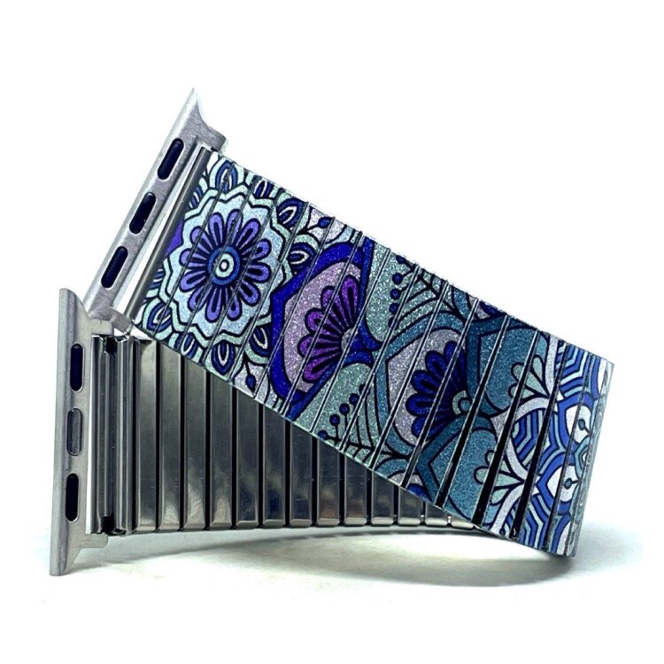 Stainless steel designer bracelet for smart watch 22mm handmade in London - turquoise mandala Ambience Metallic