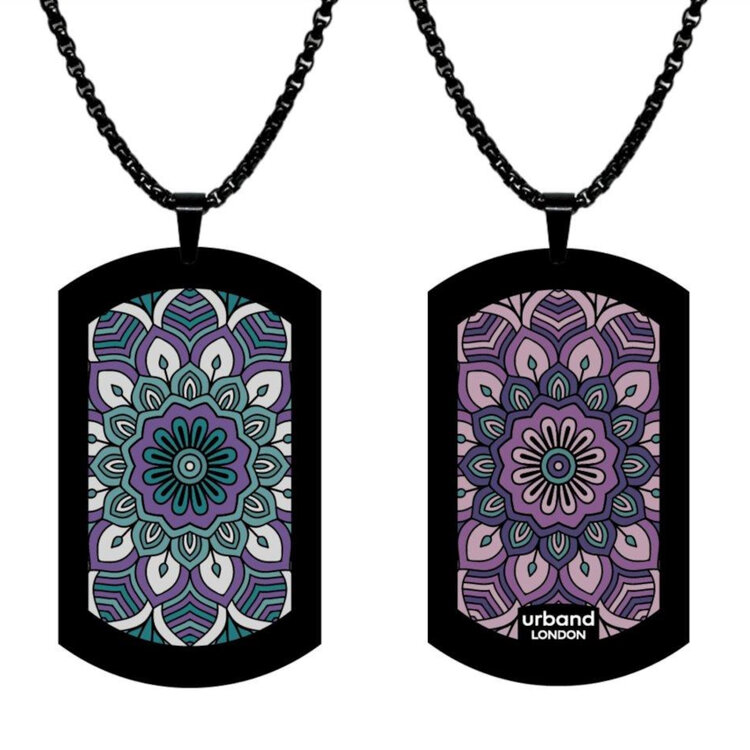 Stainless steel designer double-sided pendant 29mm handmade in London - blue Ambience Metallic
