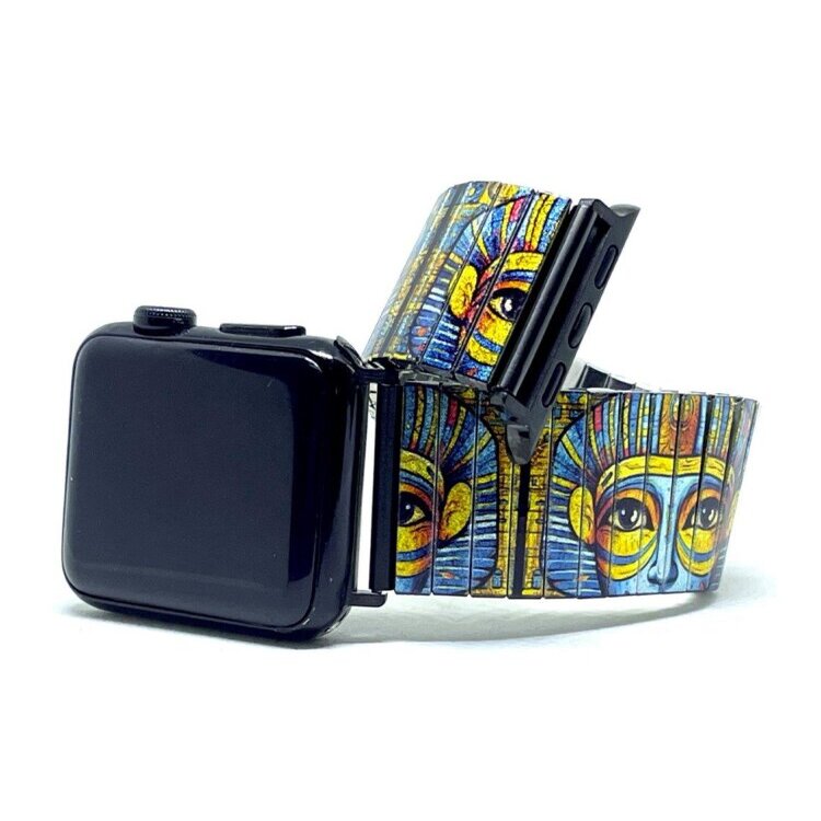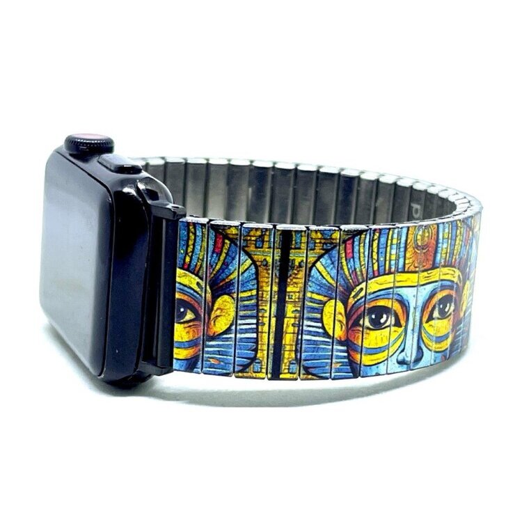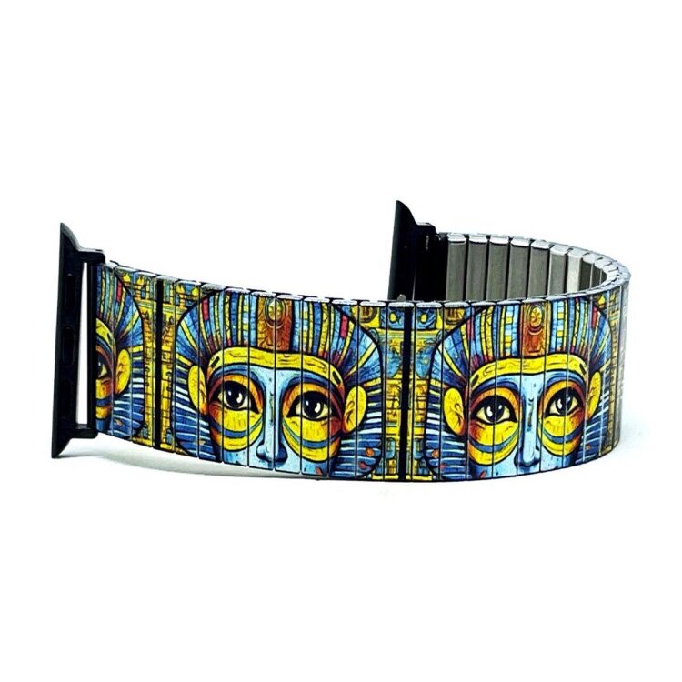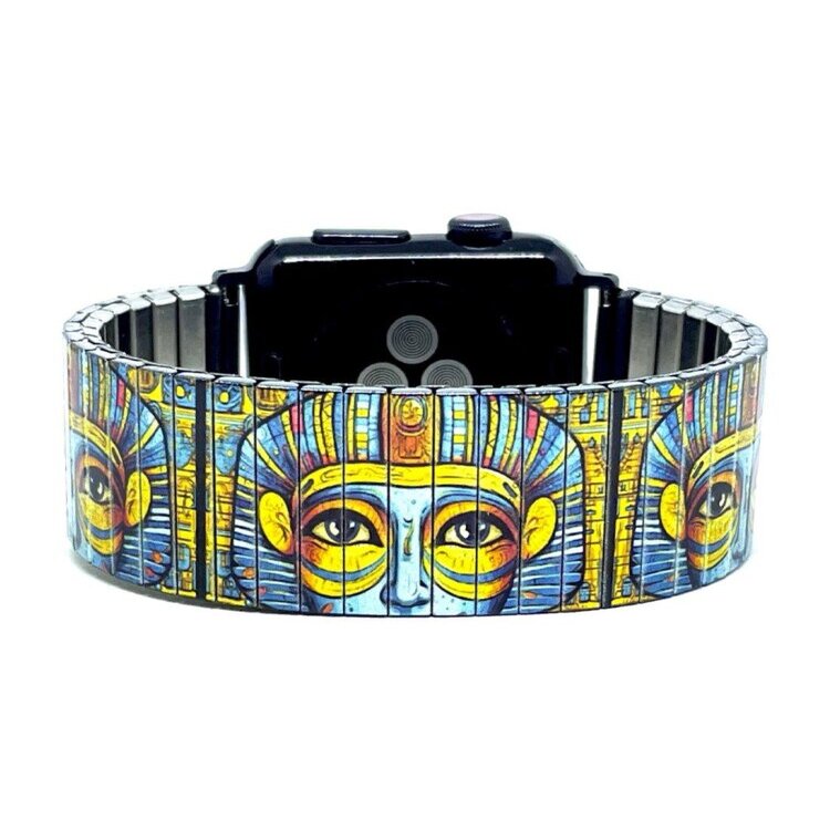Stainless steel designer bracelet for smart watch 18mm handmade in London - Art Egyptian Tutankhamun Metallic