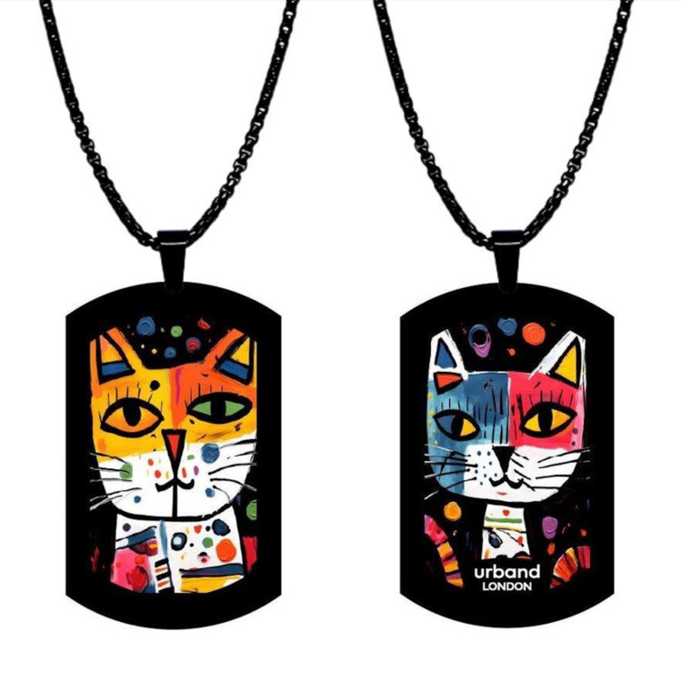 Stainless steel designer double-sided pendant 24mm handmade in London - Art year of the cat Metallic