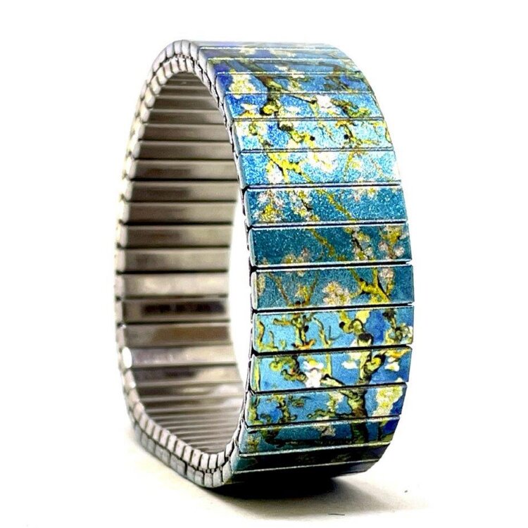 Stainless steel designer bracelet 18mm handmade in London - Art Van Gogh almond blossom Metallic