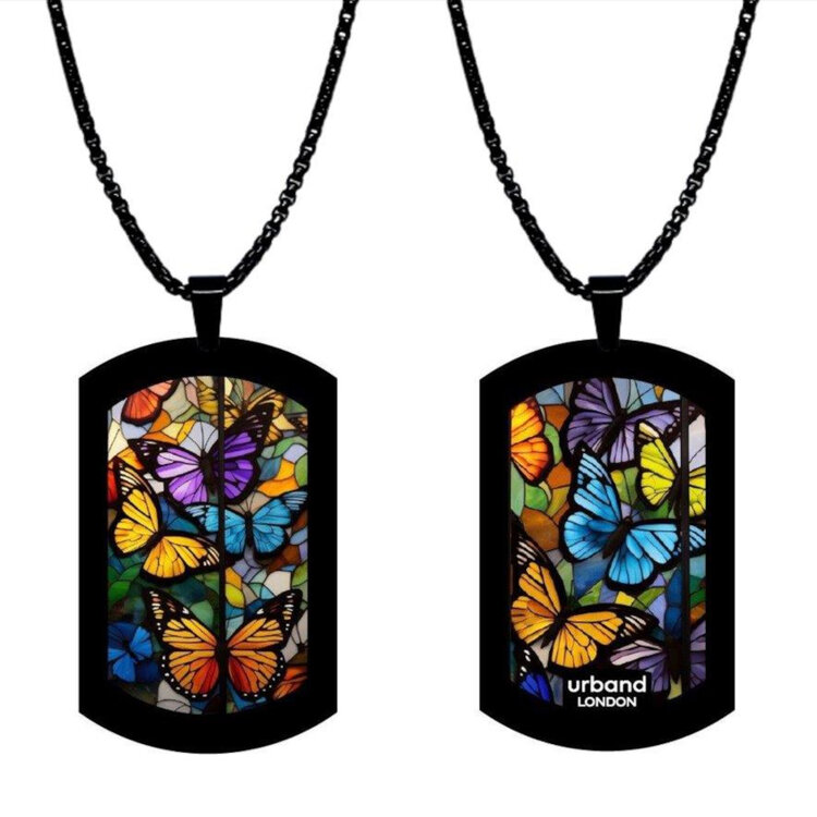 Stainless steel designer double-sided pendant 24mm handmade in London - Art butterflies heaven Metallic