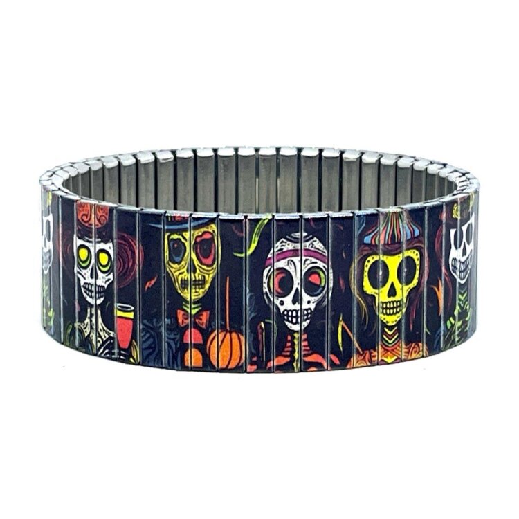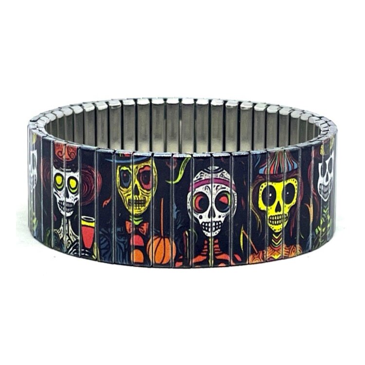 Stainless steel designer bracelet 22mm handmade in London - Art of the living dead Metallic