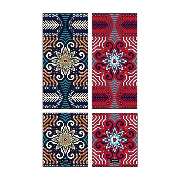 Stainless steel designer double-sided smartphone stand handmade in London - Carnival blue and red lotus Metallic