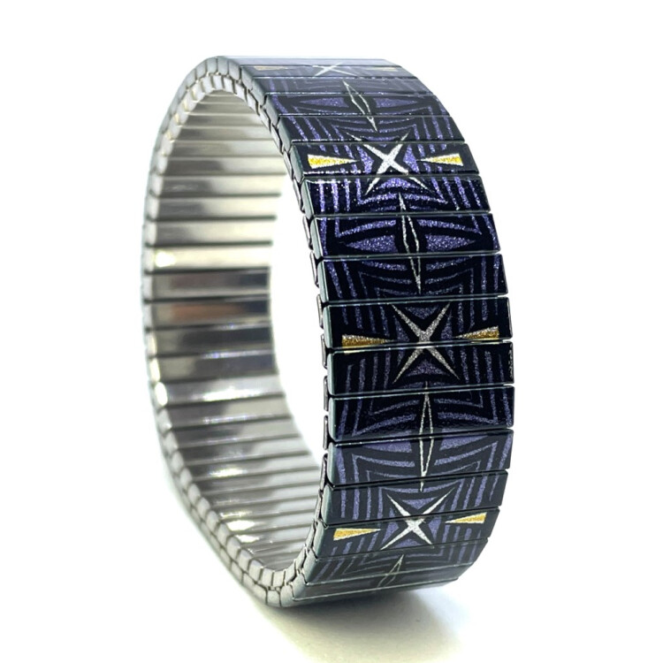 Stainless steel designer bracelet 18mm handmade in London - Carnival Peru Metallic