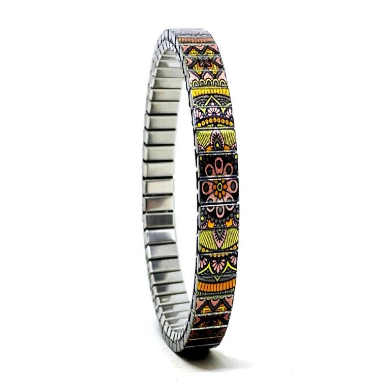 Stainless steel designer bracelet 6mm handmade in London - Carnival golden flowers mandala Metallic