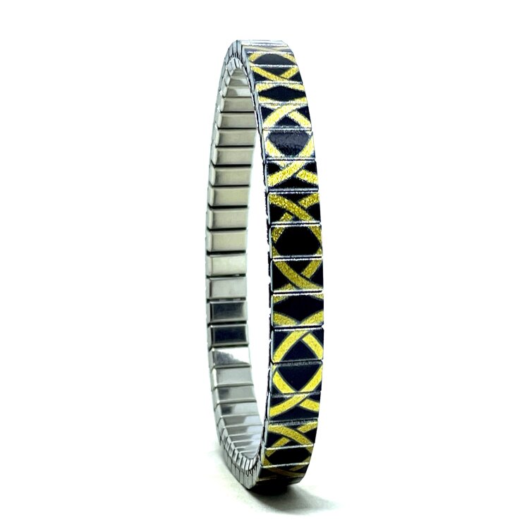 Stainless steel designer bracelet 6mm handmade in London - Celtic black and gold shield Metallic