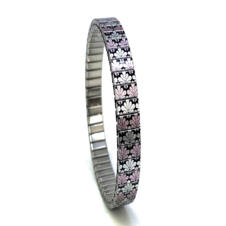 Stainless steel designer bracelet 6mm handmade in London - Checkers Kites flowers Metallic