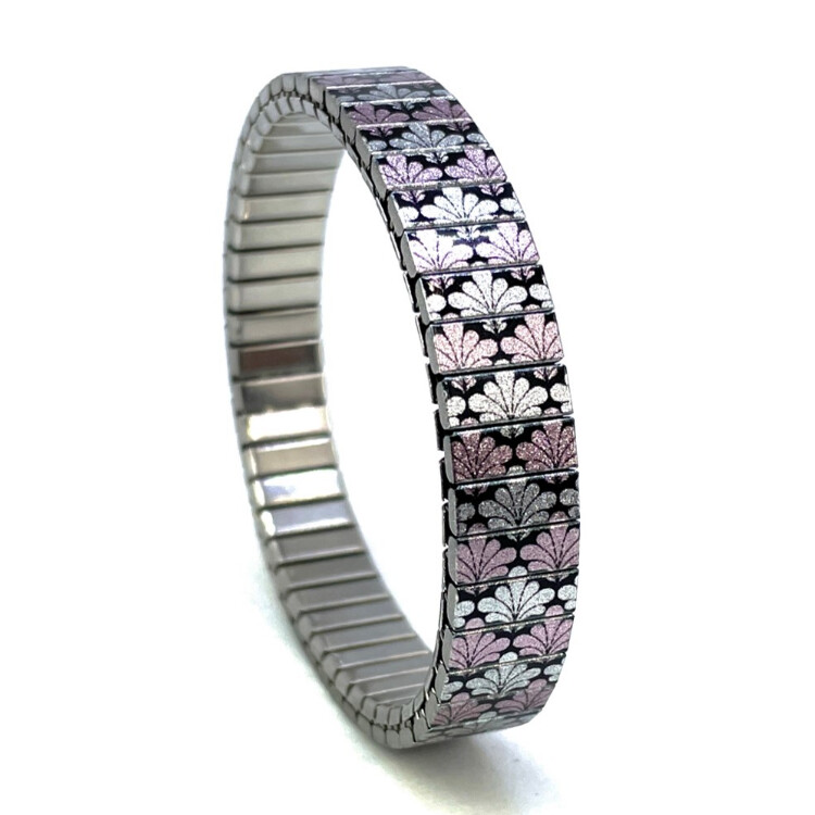 Stainless steel designer bracelet 10mm handmade in London - Checkers Kites flowers Metallic