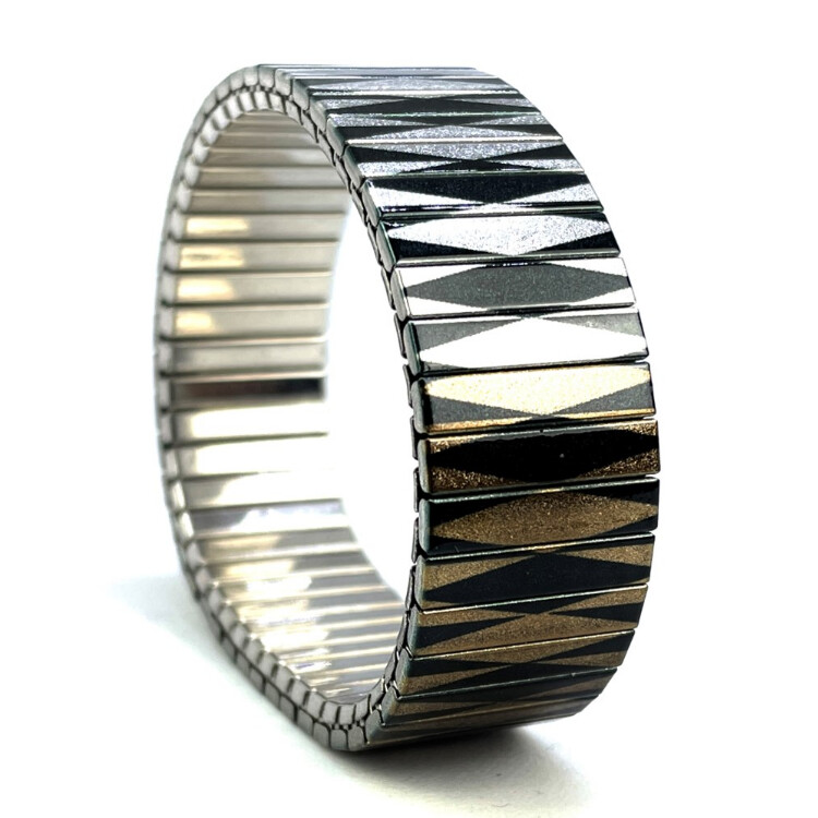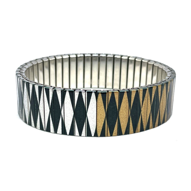 Stainless steel designer bracelet 18mm handmade in London - Checkers Kites 2in1 harlequin Metallic