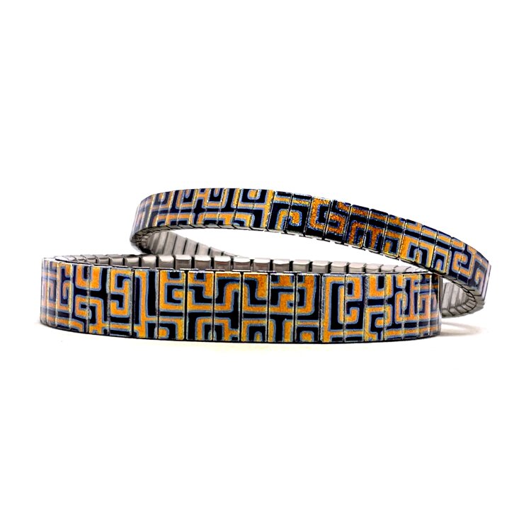 Stainless steel designer bracelet 10mm handmade in London - Checkers Maze orange Metallic