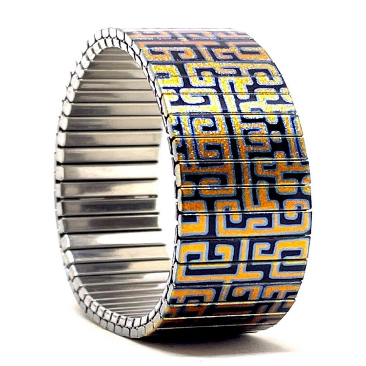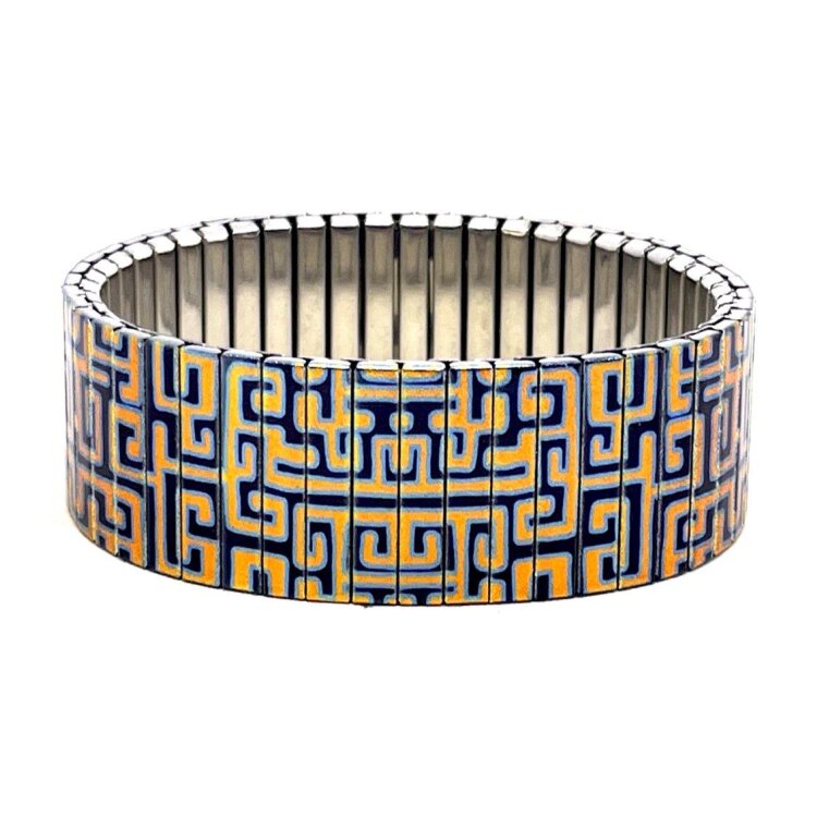 Stainless steel designer bracelet 22mm handmade in London - Checkers Maze orange Metallic