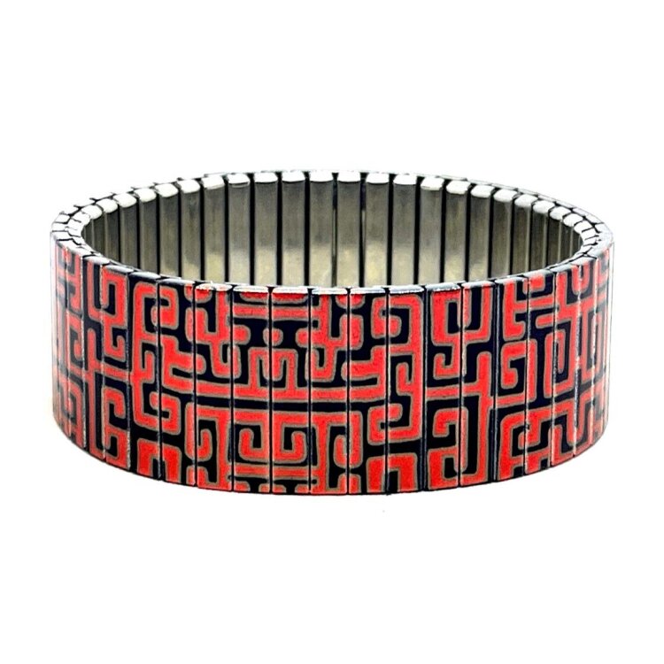 Stainless steel designer bracelet 22mm handmade in London - Checkers Maze deep orange Metallic