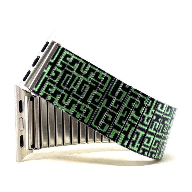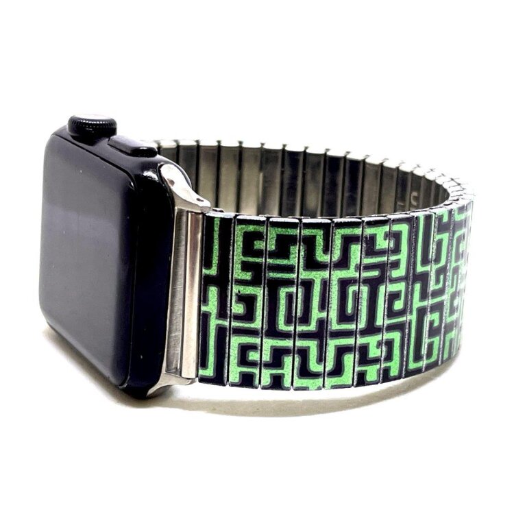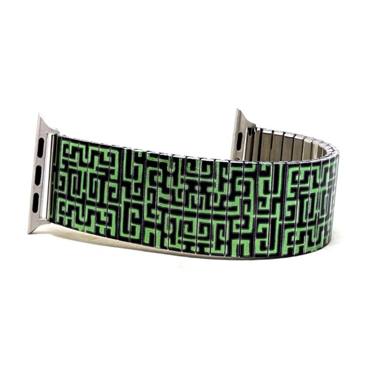 Stainless steel designer bracelet for smart watch 22mm handmade in London - Checkers Maze sea green Metallic