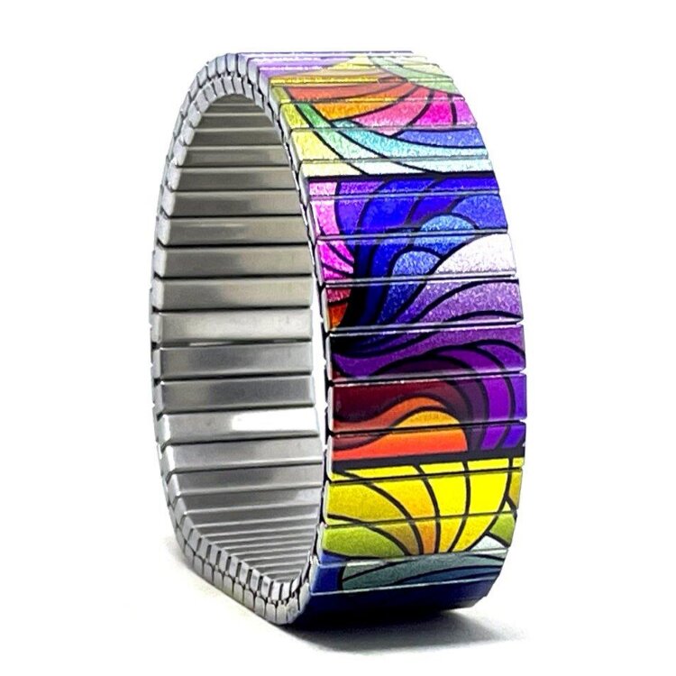 Stainless steel designer bracelet 18mm handmade in London - Checkers Maze rainbow Metallic
