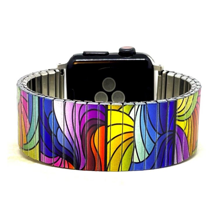 Stainless steel designer bracelet for smart watch 22mm handmade in London - Checkers Maze rainbow Metallic