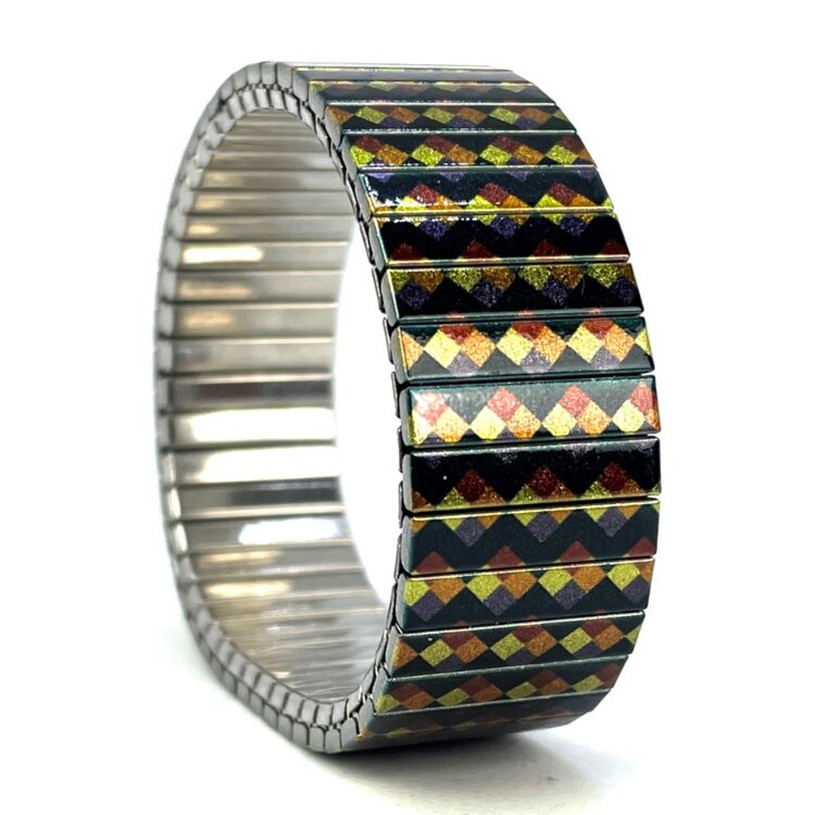 Stainless steel designer bracelet 18mm handmade in London - Checkers Orange dark chic Metallic