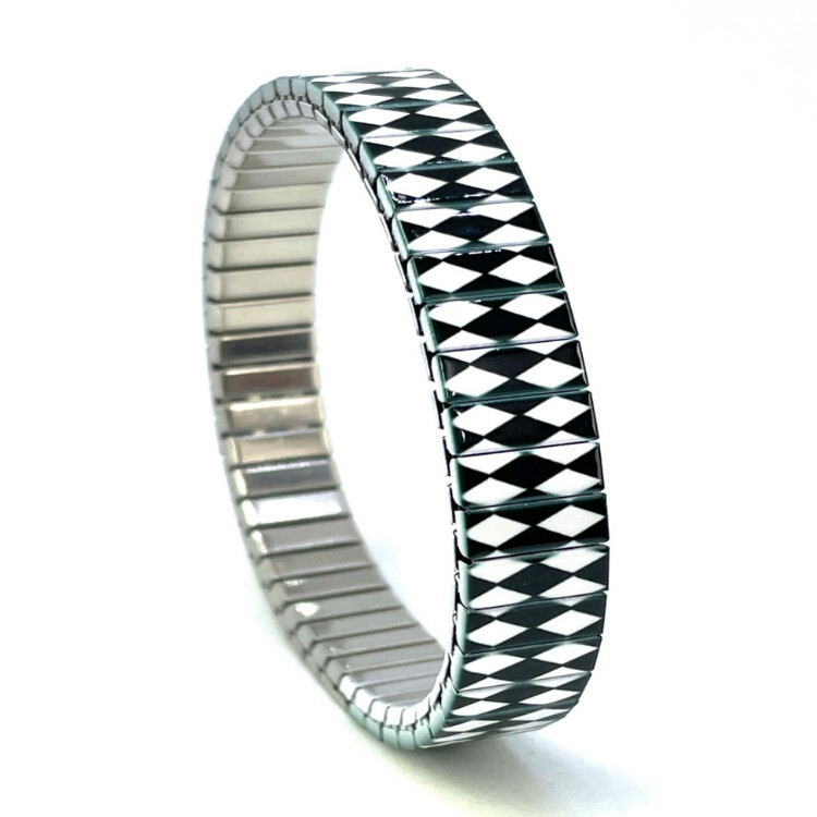 Stainless steel designer bracelet 10mm handmade in London - Checkers Simplicity harlequins