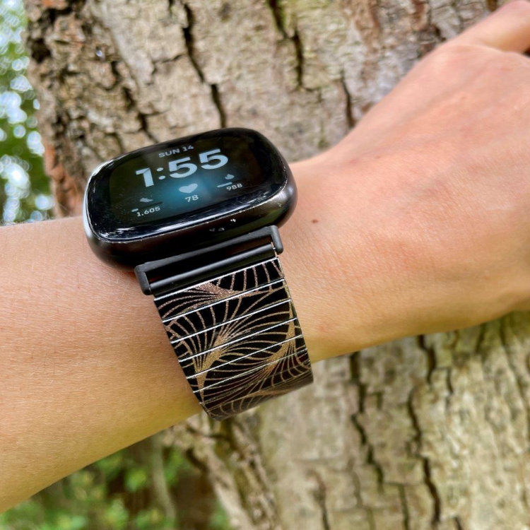 Stainless steel designer bracelet for smart watch 22mm handmade in London - Circles Eclipse rose leaves Metallic