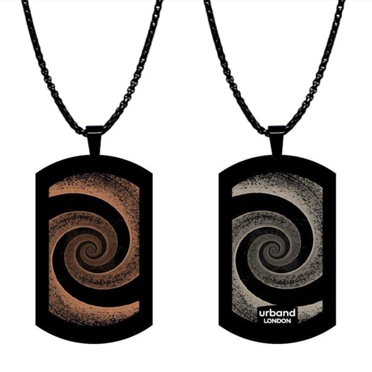 Categories: Double-sided pendants, Contemporary pendants, Wearable art, Gift ideas, British designer, Art, Designer pendant, Unique pendants, Original pendant, Cool pendants, Tag pendants, Fashionable pendants, Stainless steel pendants, Black chain, Links chain, Unisex pendands, Personalised pendants, Contemporary Jewelery, Handmade pendants