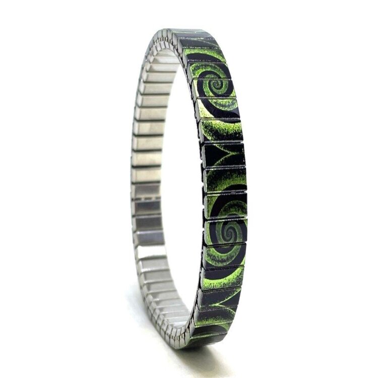Stainless steel designer bracelet 6mm handmade in London - Circles Eclipse green elephant Metallic