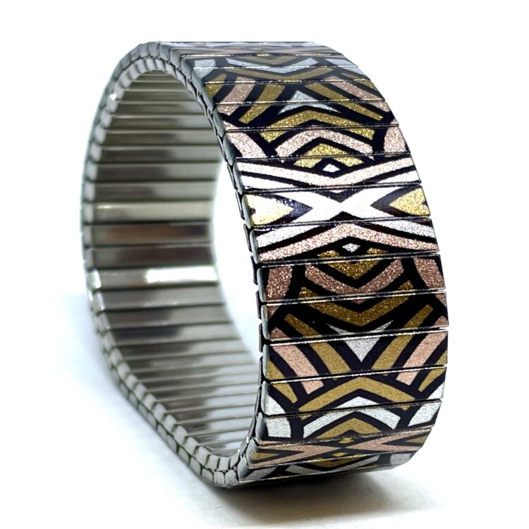 Stainless steel designer bracelet 22mm handmade in London - Circles Mandala namibia Metallic