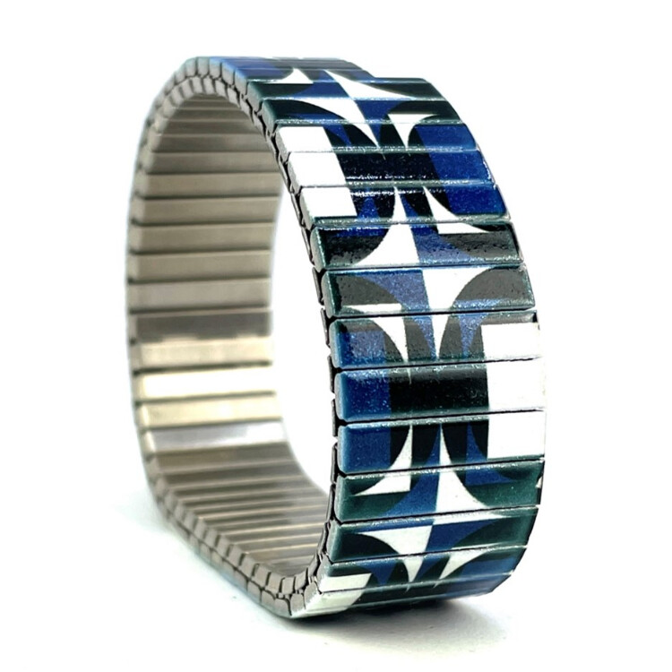 Stainless steel designer bracelet 18mm handmade in London - Circles Mandala shades of blue