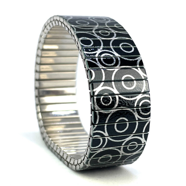 Stainless steel designer bracelet 18mm handmade in London - Circles Within black Metallic