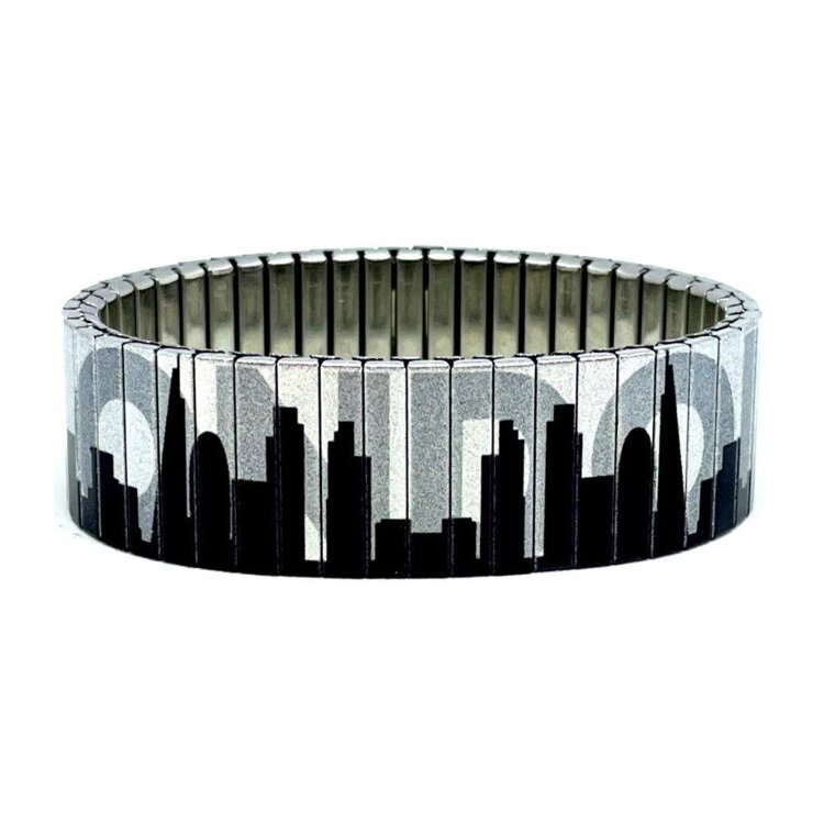 Stainless steel designer bracelet 22mm handmade in London - Cities London skyline Metallic