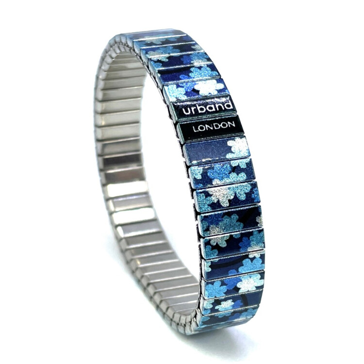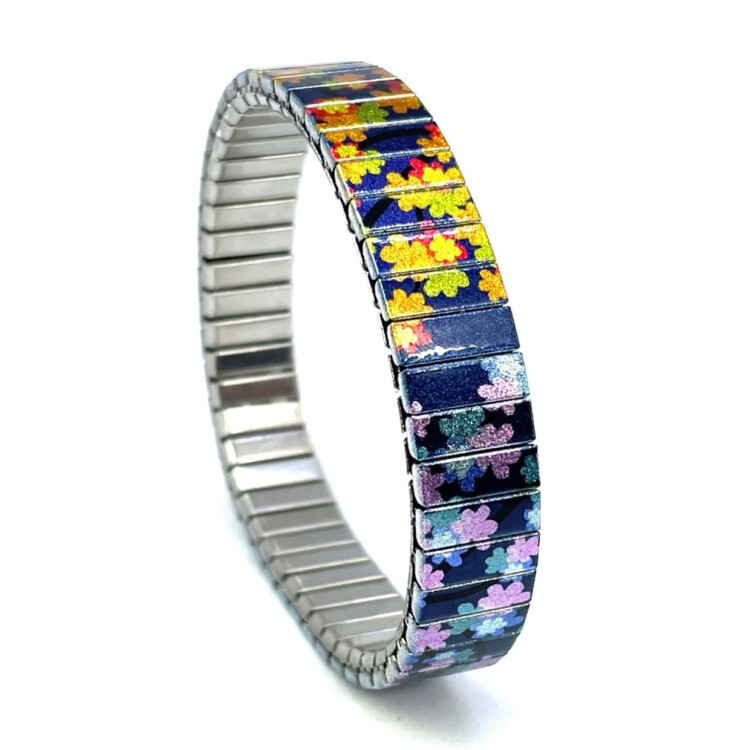 Stainless steel designer bracelet 10mm handmade in London - Cool Blossom tropical Metallic
