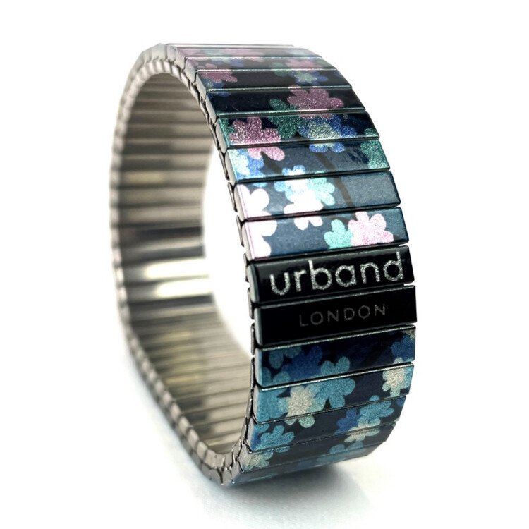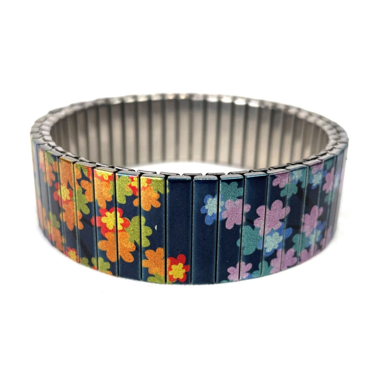Stainless steel designer bracelet 18mm handmade in London - Cool Blossom tropical Metallic