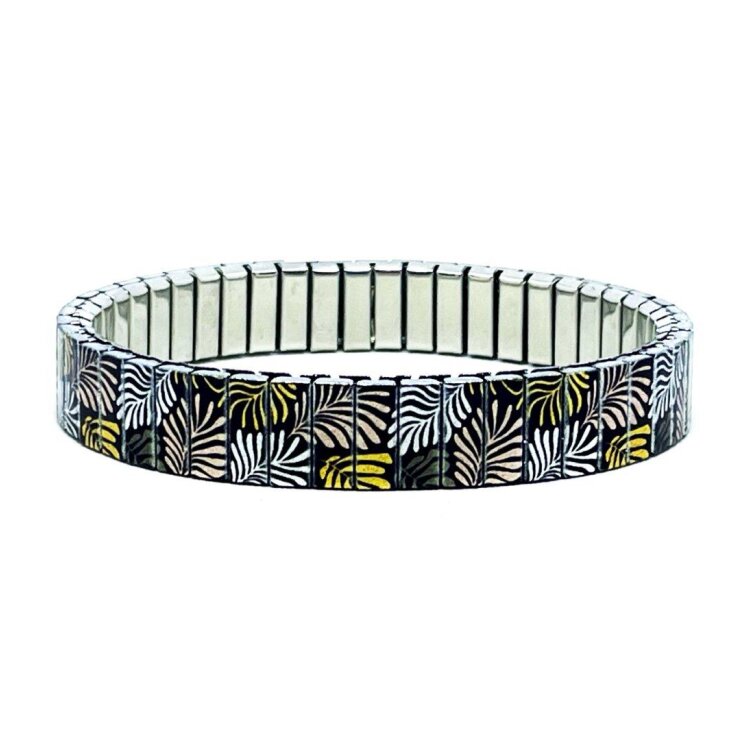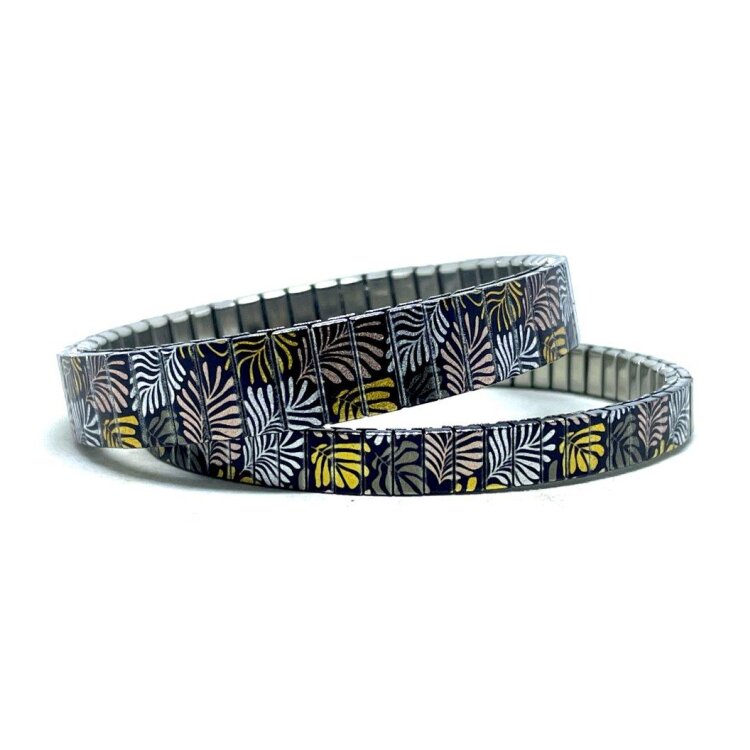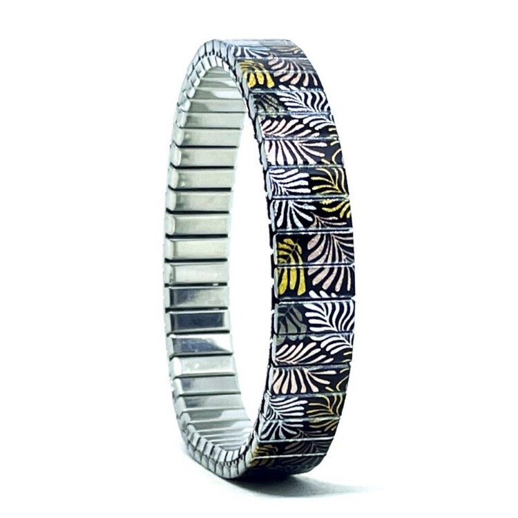 Stainless steel designer bracelet 10mm handmade in London - Cool Blossom golden leaves Metallic