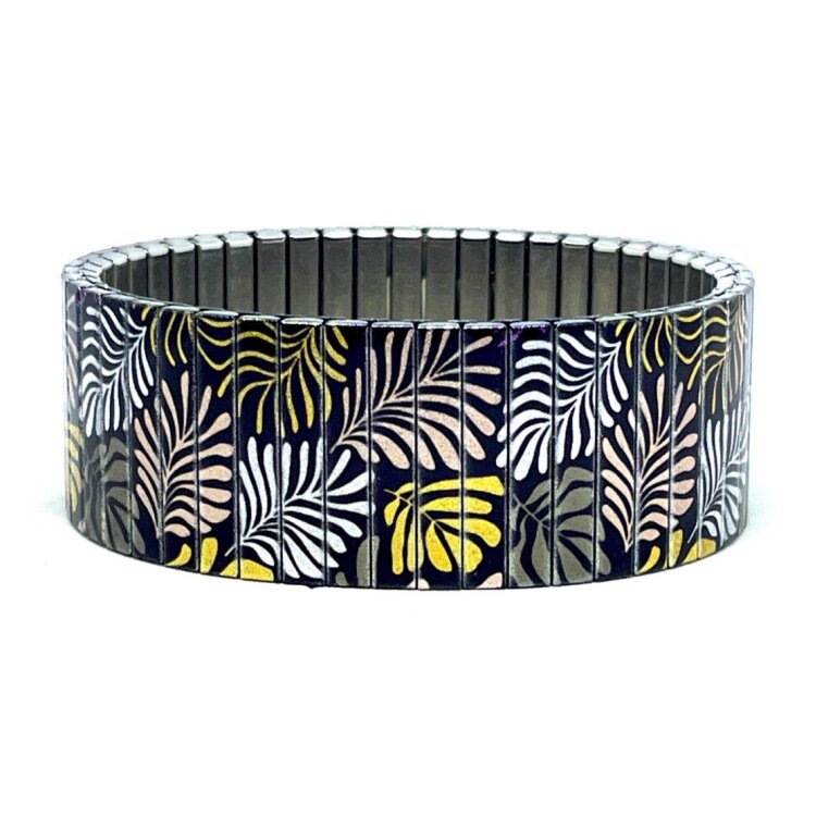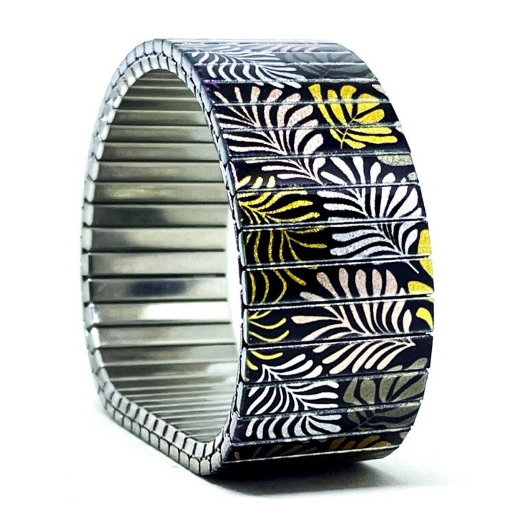 Stainless steel designer bracelet 22mm handmade in London - Cool Blossom golden leaves Metallic