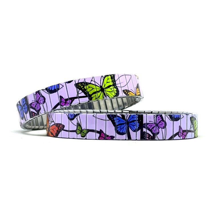 Stainless steel designer bracelet 10mm handmade in London - Cool Blossom butterflies velvet pastel