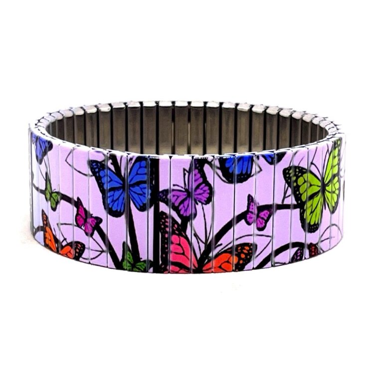 Stainless steel designer bracelet 22mm handmade in London - Cool Blossom butterflies velvet pastel