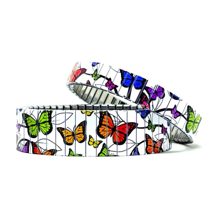 Stainless steel designer bracelet 18mm handmade in London - Cool Blossom butterflies fantasy
