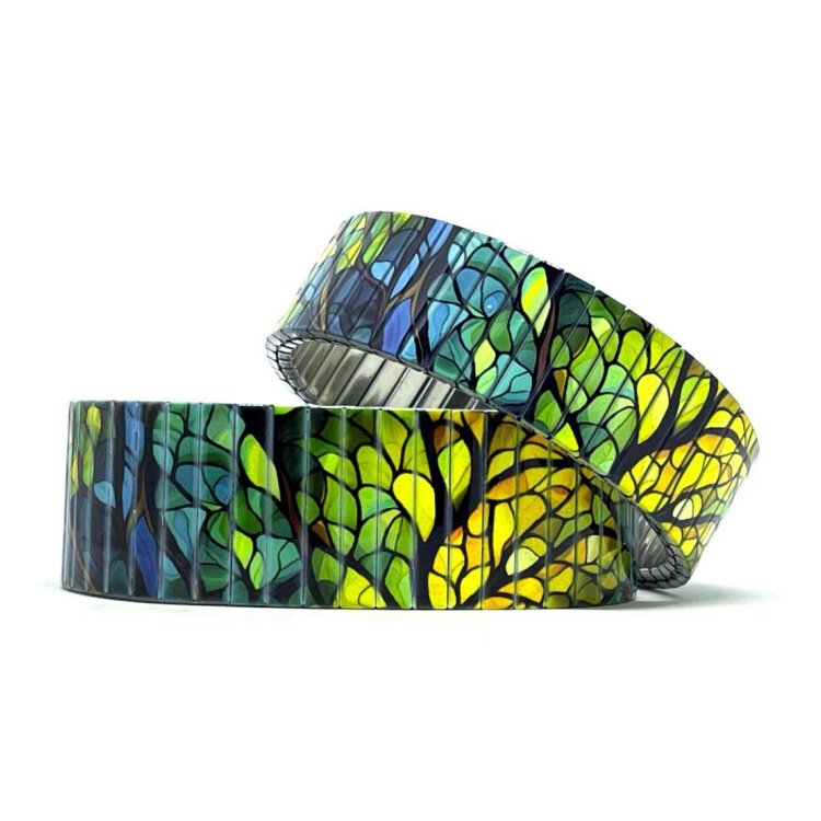 Stainless steel designer bracelet 22mm handmade in London - Cool Blossom sunrise in the forest