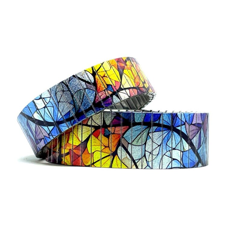 Stainless steel designer bracelet 22mm handmade in London - Cool Blossom sunset in the forest Metallic