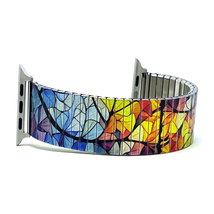 Stainless steel designer bracelet for smart watch 22mm handmade in London - Cool Blossom sunset in the forest Metallic
