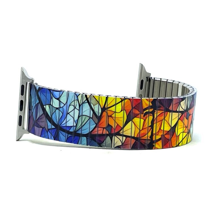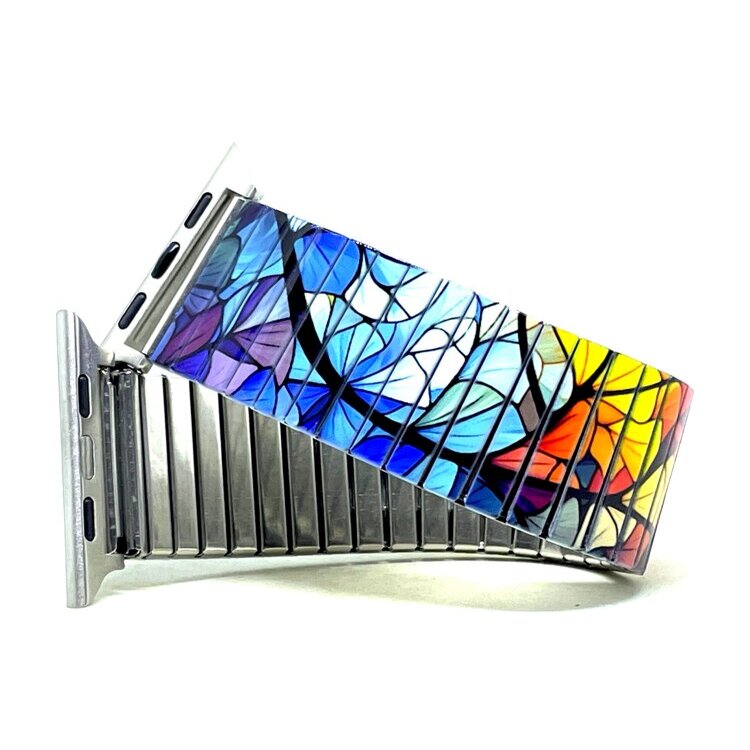 Stainless steel designer bracelet for smart watch 18mm handmade in London - Cool Blossom sunset in the forest