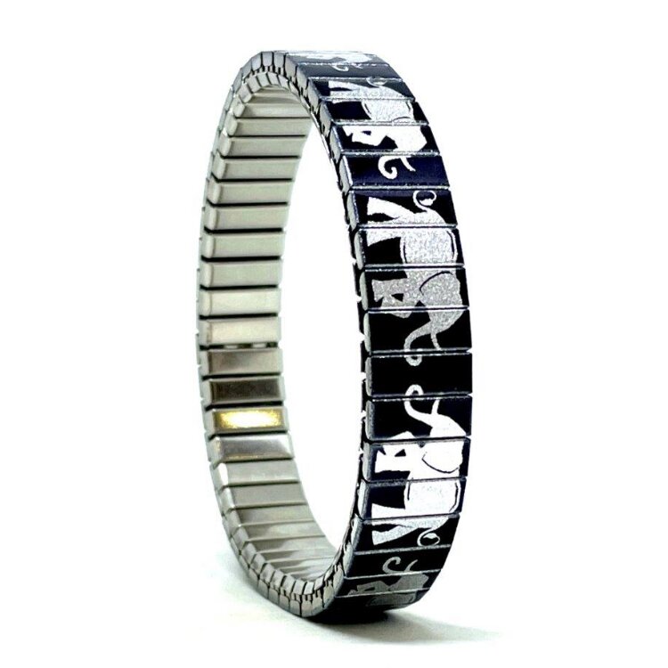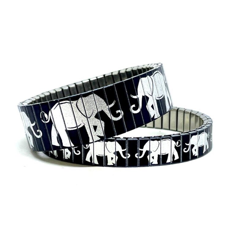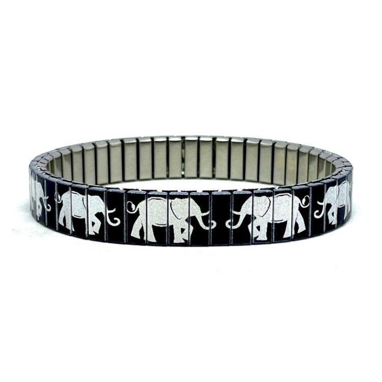 Stainless steel designer bracelet 10mm handmade in London - Elephants safari moonlight Metallic