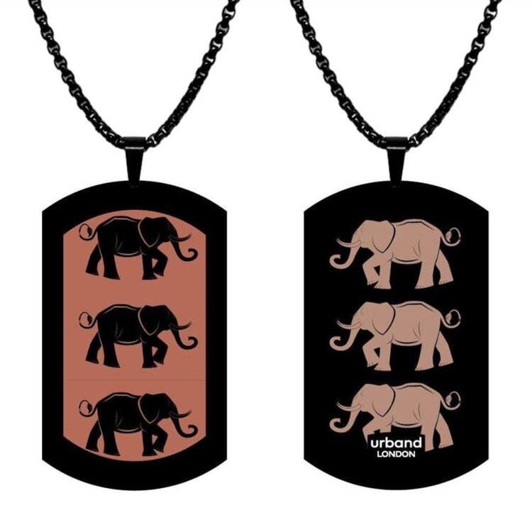 Stainless steel designer double-sided large size pendant 29mm x 50mm handmade in London - Elephants wild safari Metallic