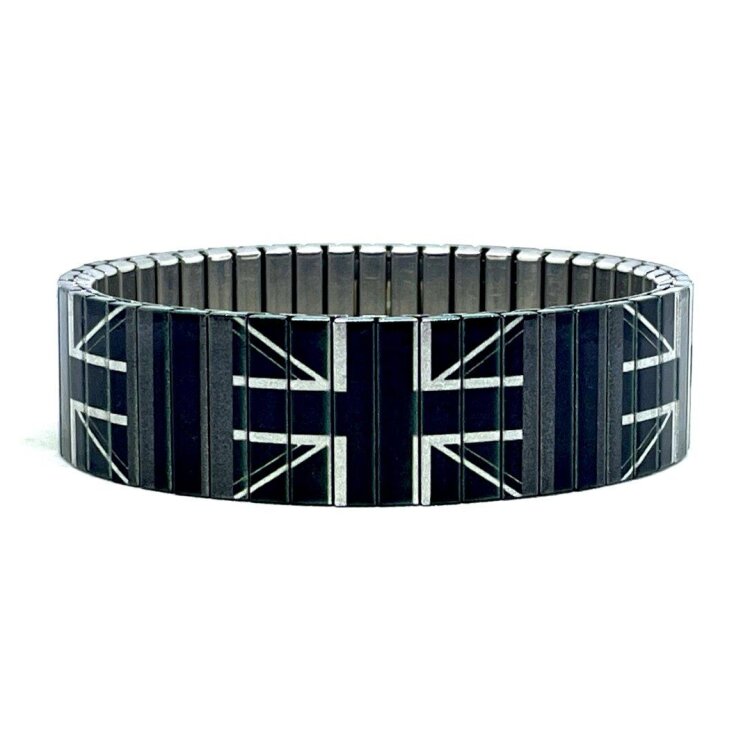 Stainless steel designer bracelet 18mm handmade in London - Flags British silver Metallic