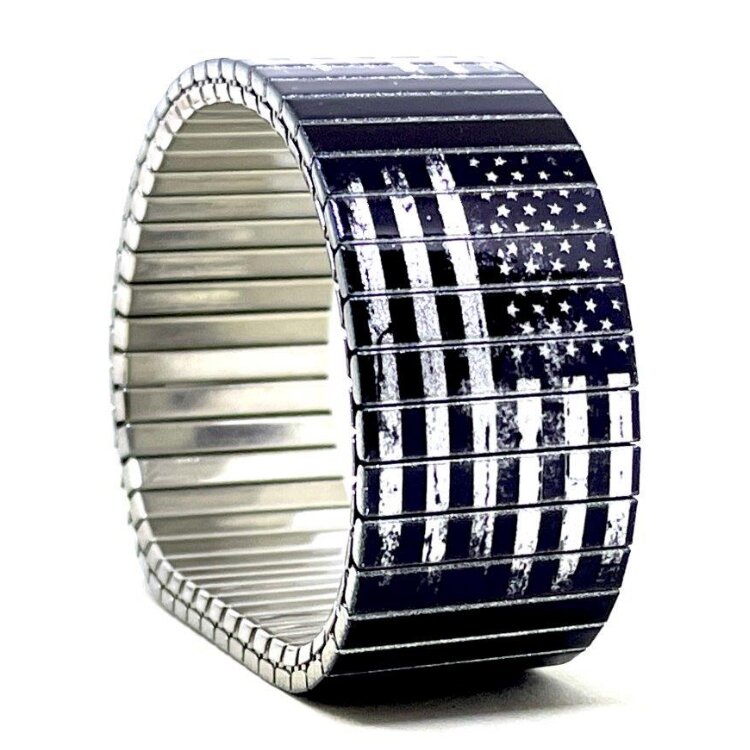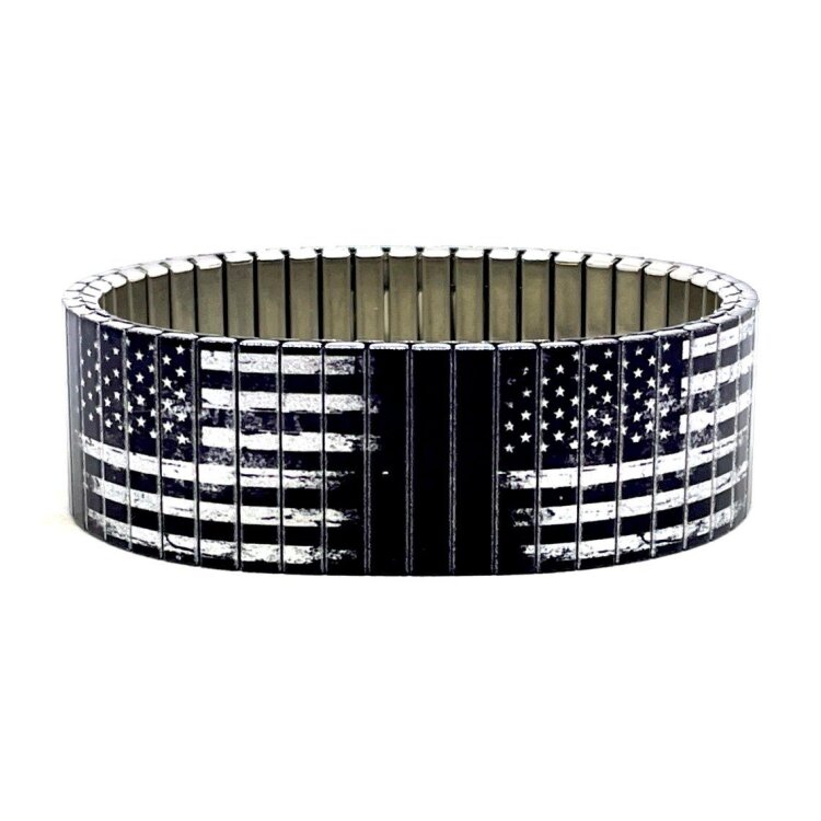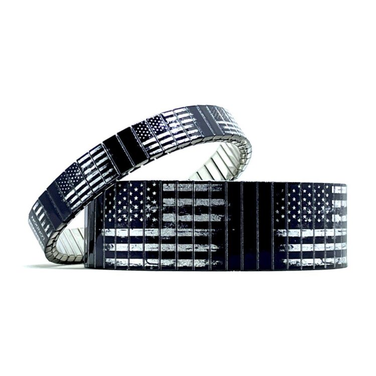 Stainless steel designer bracelet 22mm handmade in London - Flags USA retro black Metallic